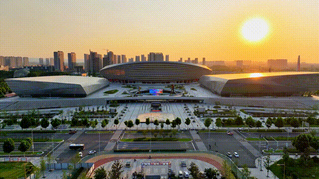 “星空夜市位于奧體中心的樞紐位置——東下沉廣場,北側緊鄰鄭州唯一一個國際標準的冰上運動中心。