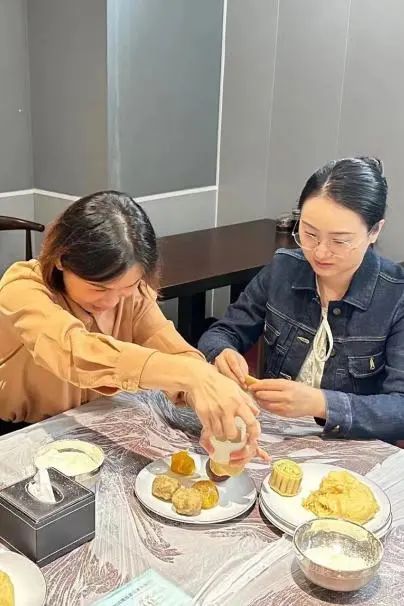 晶瑩剔透的餅皮、沁甜馥郁的餡料、精致的雕花模具,在專業老師的指導下,變成一個個美味的月餅。