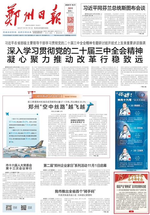 黨的二十屆三中全會提出,高質量發展是全面建設社會主義現代化國家的首要任務。當前,鄭州正錨定高質量發展這一首要任務,因地制宜發展新質生產力,加快構建現代化產業體系。