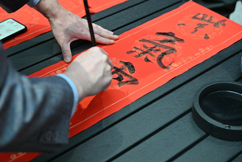 活動當(dāng)天,鄭州市文聯(lián)的書法家們受邀來到現(xiàn)場。他們個個精神飽滿,手執(zhí)毛筆,在一張張紅紙上揮灑自如,書寫著寓意深遠(yuǎn)的新年序言。這些序言既是對過去一年的總結(jié),也是對新年的美好期許。書法家們的精彩表演贏得了現(xiàn)場觀眾的連連稱贊,租戶們紛紛表示:“書法家們寫的字真是太好了!‘福’字看著就喜慶,春聯(lián)的寓意也都非常美好。”