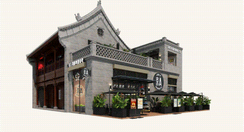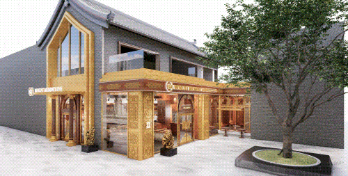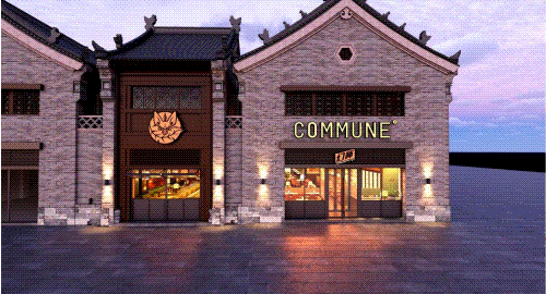 以COMMUNE幻師的門店設(shè)計(jì)為例——從效果圖可以看出,建筑外部以青灰色磚墻復(fù)刻商代建筑肌理,檐角神獸造型融入現(xiàn)代燈光設(shè)計(jì),整體風(fēng)格充滿著古樸與時(shí)尚。店內(nèi)則以暖色調(diào)營(yíng)造松弛感,酒墻擺滿了來自全球的精釀。每當(dāng)味蕾觸碰到精釀的麥香,窗外同時(shí)飄入來自3600年前夯土的氣息——在這里,顧客喝的不是單純的酒,而是歷史與現(xiàn)代的奇妙敘事。