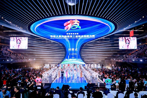 第三屆全國技能大賽是我國賽事規格最高、競賽項目最多、參賽規模最大、影響范圍最廣的綜合性國家職業技能賽事。閉幕式上,共為本次大賽106個競賽項目(66個世界技能大賽選拔項目和40個國賽精選項目)的獲獎選手頒發獎章。激動人心的頒獎和創意十足的演出結束后,大賽組委會主任、人力資源社會保障部部長王曉萍宣布大賽閉幕。大賽組委會主任、河南省省長王凱致閉幕詞。承辦第四屆全國技能大賽的浙江省省長劉捷承接會旗。世界技能組織首席執行官大衛·霍伊發表視頻致辭。