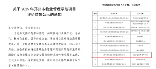 近日,鄭州市物業管理協會官網發布《關于2025年鄭州市物業管理示范項目評價結果公示的通知》,城發·金岱智慧產業園獲評“鄭州市物業管理示范項目”。
