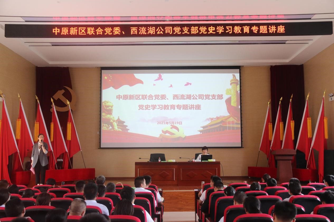 黨史是最好的教科書和營養(yǎng)劑,在中國共產(chǎn)黨成立100周年之際,為扎實開展好黨史學習教育,引導廣大黨員干部職工知史愛黨、知史愛國,進一步樹牢“四個意識”、堅定“四個自信”、做到“兩個維護,推動黨史學習教育取得實效,5月19日下午,中原新區(qū)聯(lián)合黨委、西流湖公司黨支部邀請河南省委黨校黨史教研部副主任、副教授楚向紅老師開展黨史學習教育專題講座。公司領導班子、西流湖公司、鄭地發(fā)展以及中原新區(qū)聯(lián)合黨委黨員職工代表共計150余人參加講座。